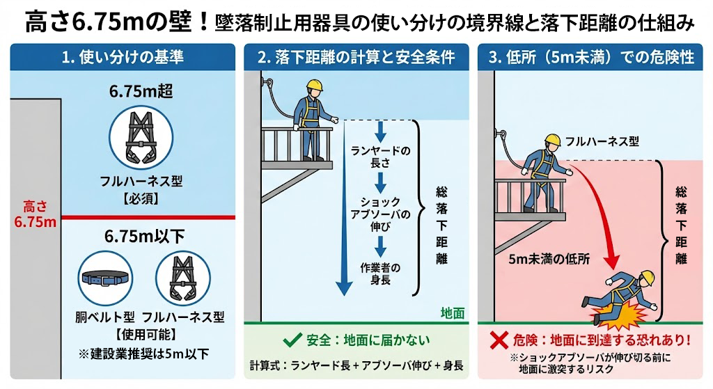 「高さ6.75mを超えたらフルハーネスが必要」 現場に関わる方なら一度は耳にしたことがあるルールですよね。